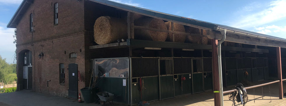 Wir gehören mit 40 Pferdeboxen, fast alles Außenklimaboxen in 5 Ställen, einer Bewegungshalle, dem Pferdelaufband, einer Galoppstrecke, sowie mehreren Dressur und Springplätzen mit zu einer der größten Reitanlagen der Region.